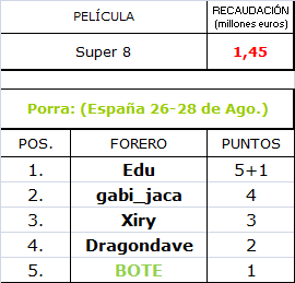 ~ Porra de taquilla: (España 26-28 de agosto) ~