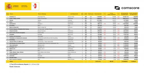 # Semana: (23-25 de Enero) - El fin de semana del 23 al 25 de Enero de 2026 las veinticinco películas más taquilleras recaudaron 6.781.741 euros gracias a 890.367 espectadores.