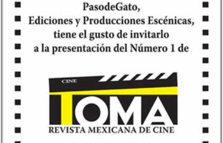 Toma bajo la dirección de Flavio González, y que presenta en su edición debut un dossier dedicado a las nuevas tecnologías y a la revolución desatada por el formato digital. Esta nueva revista bimestral estará dedicada en su mayor contenido al cine mexicano e internacional, sin caer en los formulismos de muchas revistas de cine mexicanas más enfocadas al cine de