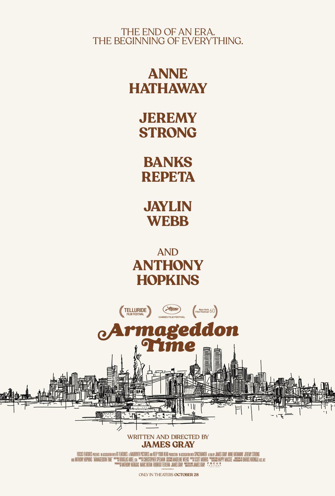 Focus Features y Universal Pictures presentan el tráiler oficial de 'Armageddon Time', la nueva película escrita y dirigida por James Gray cuyo reparto encabezan Anne Hathaway, Jeremy Strong, Anthony Hopkins y los jóvenes Banks Repeta y Jaylin Webb.