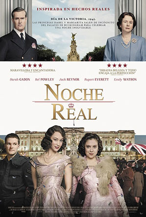 A Contracorriente Films ha lanzado el tráiler y cartel españoles de 'Noche real', comedia basada en hechos reales que ha dirigido Julian Jarrold ('La joven Jane Austen') con Sarah Gadon ('Enemy'), Bel Powley ('The Diary of a Teenage Girl'), Jack Reynor ('Macbeth'), Emily Watson ('Everest') y Rupert Everett ('Altamira') de principales protagonistas. Su historia se desarrolla el 8 de mayo de 1945, el día de la Victoria en Europa. La ciudad de Londres celebra el final de la II Guerra Mundial y en Buckingham Palace hay dos princesas deseosas de ser parte de la alegría fuera de palacio. Mientras el rey Jorge prepara su discurso, a la princesa Isabel (ahora la reina Isabel II) y su hermana, la princesa Margarita, se les permite salir de incógnito para unirse a las celebraciones en una noche llena de emoción, peligro y los primeros aleteos de romance...