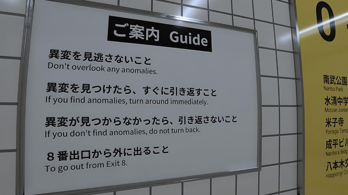 'Exit 8' adapta el videojuego homónimo del desarrollador japonés Kotake Create, una experiencia en primera persona que mezcla el terror y los puzzles donde experimentamos de muy cerca como sería quedarse atrapado en un bucle al intentar salir del metro de Japón. Su premisa se la dejan pegada al protagonista en la pared, al lado de un cartel marcando el camino a seguir para llegar a la salida 0, con las siguientes instrucciones: