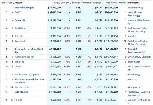 Un mercado internacional del que, obviamente, forma parte España, donde por séptima semana consecutiva se han superado los 6 millones (en este caso) de euros de recaudación. Un registro sensiblemente superior a los de 2024 o 2025. Una buena racha que ya veremos si continua ahora que parece que, por fin, ha dejado de llover...