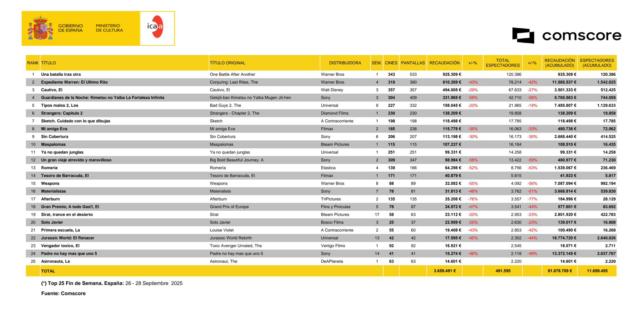 Taquilla española del 16 al 18 de Mayo.