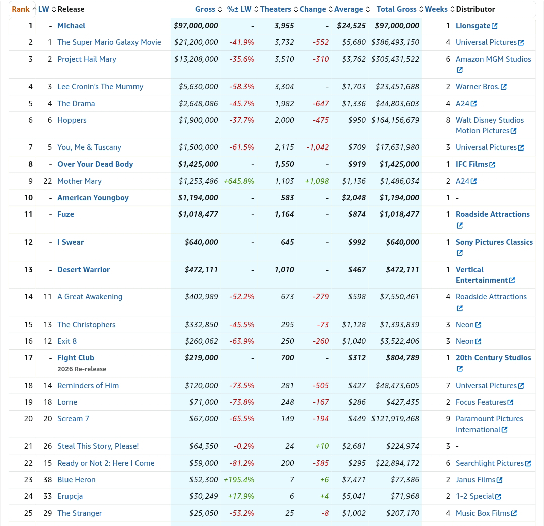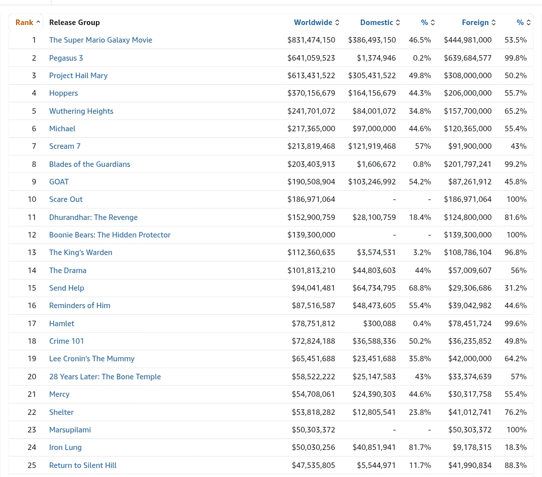 Entre tanto, Pulido por fin se ha llevado la hostia que con tanto ahínco se estaba buscando y 'Super Mario Galaxy: La película' continúa con paso firme hacia los más de 1.000 millones en todo el mundo, si bien, ya parece demasiado evidente que su recaudación final será sensiblemente inferior a la de su predecesora. Lo uno no quita lo otro.