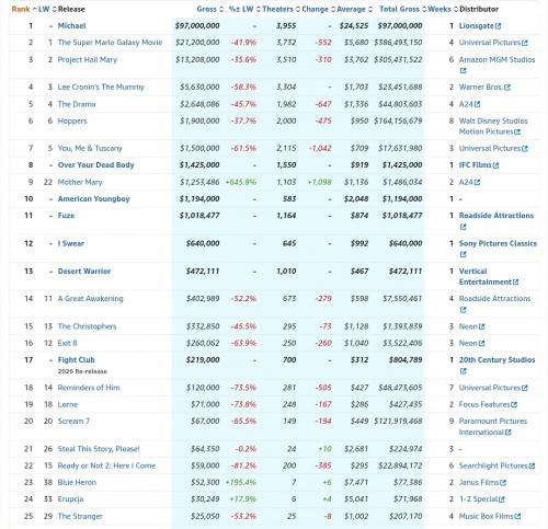 Aunque no como (media) película, 'Michael' sí ha cumplido al menos en lo comercial (gracias a esos fans que tragan con todo). La película dirigida (o no) por Antoine Fuqua ha recaudado unos 217 millones (siempre) de dólares en sus cinco primeros días en los cines de todo el mundo.