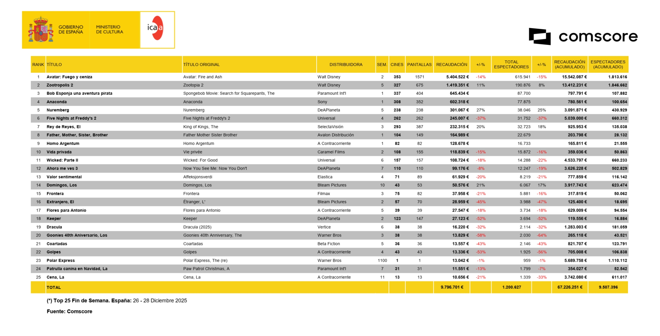 Aunque como no todo es cine norteamericano (o español), destacar al menos un par de alegrías que nos ha dejado un mercado internacional que para desgracia de Trump, poco a poco va minando la preponderancia yanqui: los éxitos de películas japonesas como 'Guardianes de la noche: Kimetsu no Yaiba La Fortaleza Infinita' y 'Kokuho', o de películas indias como 'Coolie' y 'War 2'.