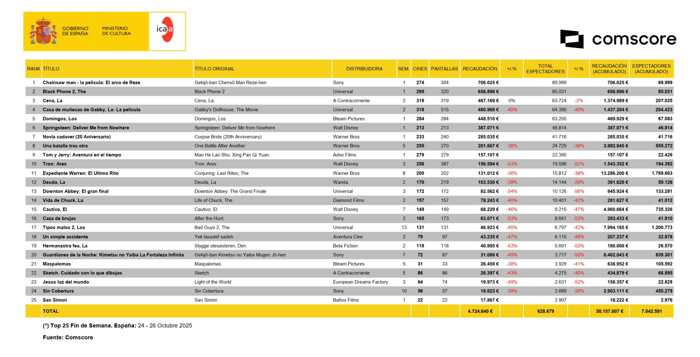 También, la primera producción norteamericana de 2025 que opta a superar los 1.000 millones de recaudación a nivel global. La semana que viene, veremos si va o no en serio.