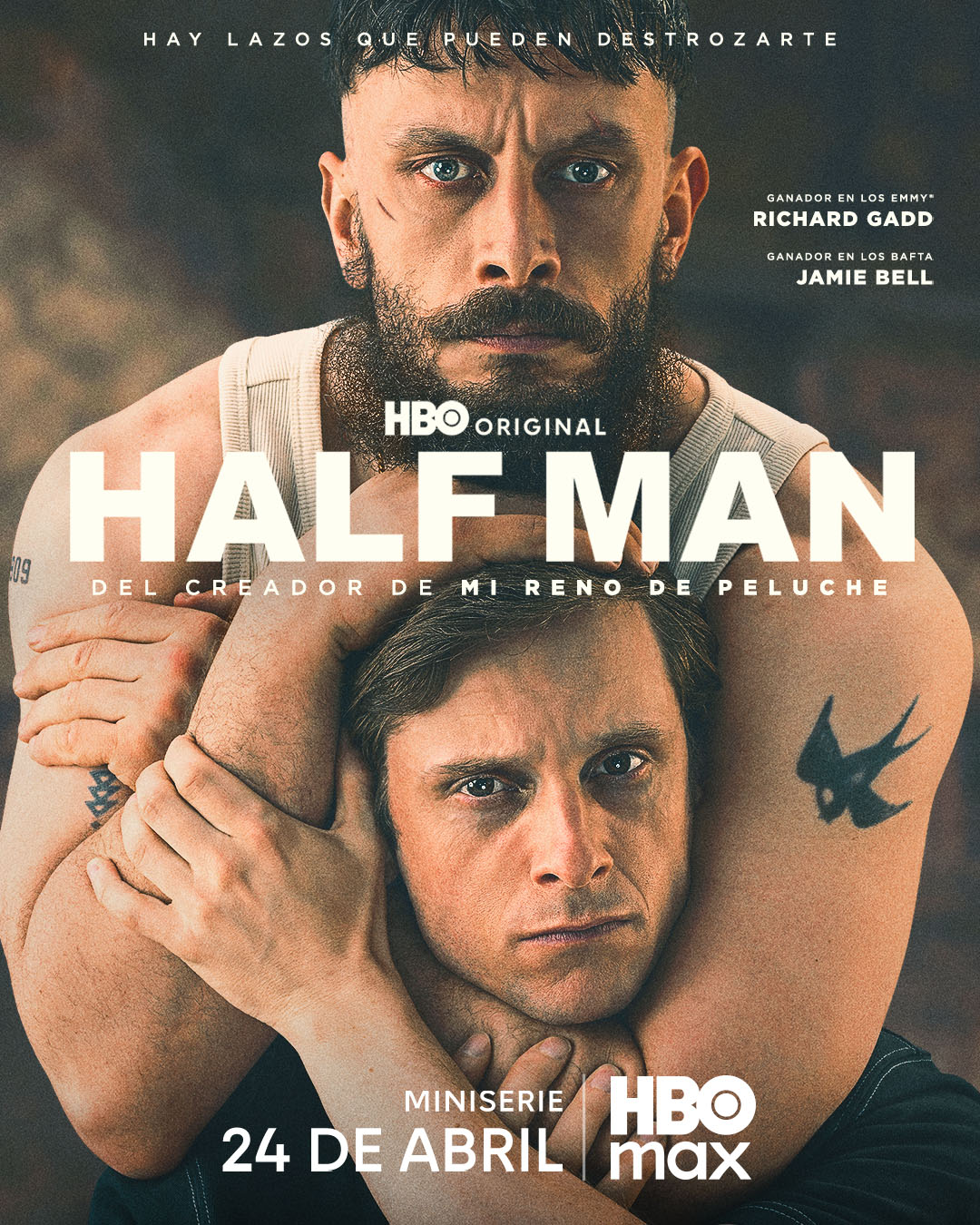 Sinopsis: Niall y Ruben son hermanos. No están emparentados por sangre, pero son lo más parecido a ello. Uno es feroz y leal. El otro, dócil y afable. Una juventud inseparable. Unidos por la muerte y las circunstancias, lo único que tienen es el uno al otro... Pero cuando Ruben aparece en la boda de Niall tres décadas después, todo parece diferente. Está nervioso. Inquieto. No actúa como él mismo. Y pronto se produce una explosión de violencia que nos catapulta de vuelta a sus vidas, desde los años ochenta hasta la actualidad. HALF MAN, que captura 30 años de la vida de estos hombres destrozados, es una serie limitada de seis episodios que explora la hermandad, la violencia y la intensa fragilidad de las relaciones masculinas. Al fin y al cabo, cuando las cosas se desmoronan... a veces son las relaciones más cercanas las que más duelen.