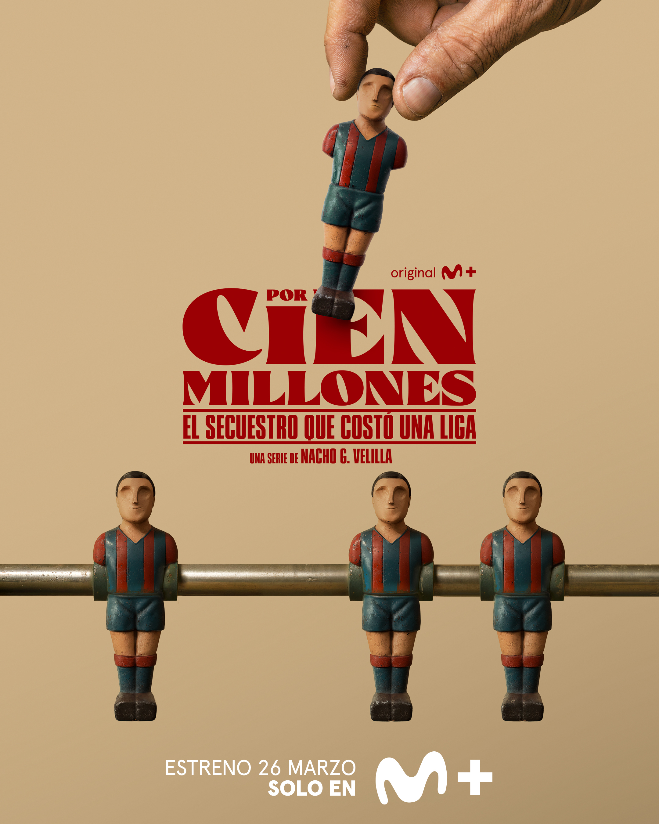 El anuncio coincide con el lanzamiento del primer avance de 'Por cien millones', serie original creada y dirigida por Nacho G. Velilla que se estrenará en la plataforma el próximo 26 de marzo. Inspirada en hechos reales, y escrita por el propio realizador junto a Oriol Capel, narra cómo a principio de los años ochenta tres mecánicos zaragozanos, agobiados por la falta de trabajo y dinero, deciden secuestrar al máximo goleador de la Liga, Enrique Castro 'Quini', delantero del FC Barcelona, y pedir un rescate de cien millones de pesetas. Una cifra desorbitada para la época.