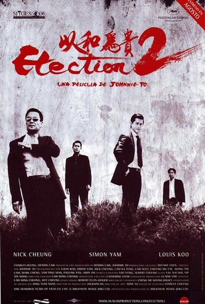 Election 2 (2006) 364 Thriller, Acción 95 Johnnie To En cines - - - de 10 de 0 usuarios Seguir Resumen Carteles Imágenes Vídeos Críticas Noticias Comentarios Votos Seguidores Cartel España Cartel versión original