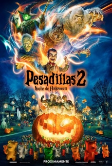 Secuela de la película de 2015, 'Pesadillas', que recaudase 156,7 millones de dólares en todo el mundo para un presupuesto de 58 millones. 'Goosebumps' (en España 'Pesadillas', aunque su traducción literal sería 'Piel de gallina') es el nombre de una serie de libros de terror y ciencia-ficción para jóvenes creada en 1992 por el escritor estadounidense R. L. Stine. La serie consta de un total de 60 libros y ha vendido más de 400 millones de copias en todo el mundo, siendo sólo superada por 'Harry Potter'. La obra tuvo una serie de televisión canadiense de 74 episodios de 21 minutos cada uno, en la que criaturas fantásticas emergen de los objetos más familiares y cotidianos (máscaras de Halloween que se adueñan de la personalidad de su portador, terroríficos espantapájaros que cobran vida, artilugios inquietantes, cementerios, brujería...)